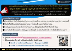 ขอเชิญนิสิตระดับบัณฑิตศึกษา และผู้ที่ผ่านการคัดเลือกเข้าศึกษาในหลักสูตรระดับบัณฑิตศึกษา ตามเกณฑ์การรับเข้าของมหาวิทยาลัยนเรศวร ปีการศึกษา 2569 สมัครเพื่อขอรับทุนสนับสนุนการศึกษาตลอดหลักสูตร สำหรับนิสิตศักยภาพสูง ในหลักสูตรระดับบัณฑิตศึกษา ม.นเรศวร ประจำปีงบประมาณ 2569 Read More